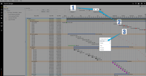 Creating an activity in the Gantt chart allows you to structure the schedule over time and organise project tasks.