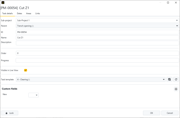 Once created, the activity can be completed or modified from the Gantt table or from its properties.