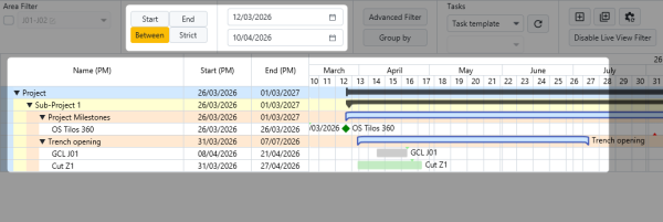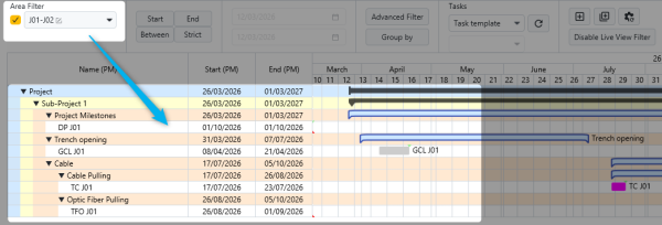 Only the activities belonging to this area will then be displayed in the Gantt chart.