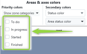 Secondary colors are used to color zones when no priority category is defined. Three methods can be used to color zones and axes: