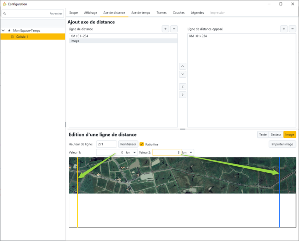 Il est possible d'ajouter une image le long de l’axe de distance afin d’enrichir la lecture du planning espace-temps.