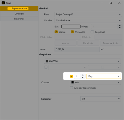 En ouvrant les propriétés d’une zone, il est possible d’associer un clipping spécifique.