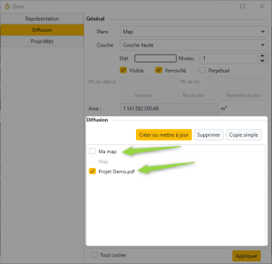 Par défaut la représentation de la zone est uniquement associée au plan sur lequel elle a été tracée.