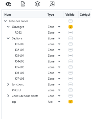 Les zones peuvent être organisées hiérarchiquement par glisser-déposer dans la liste du panneau latéral.